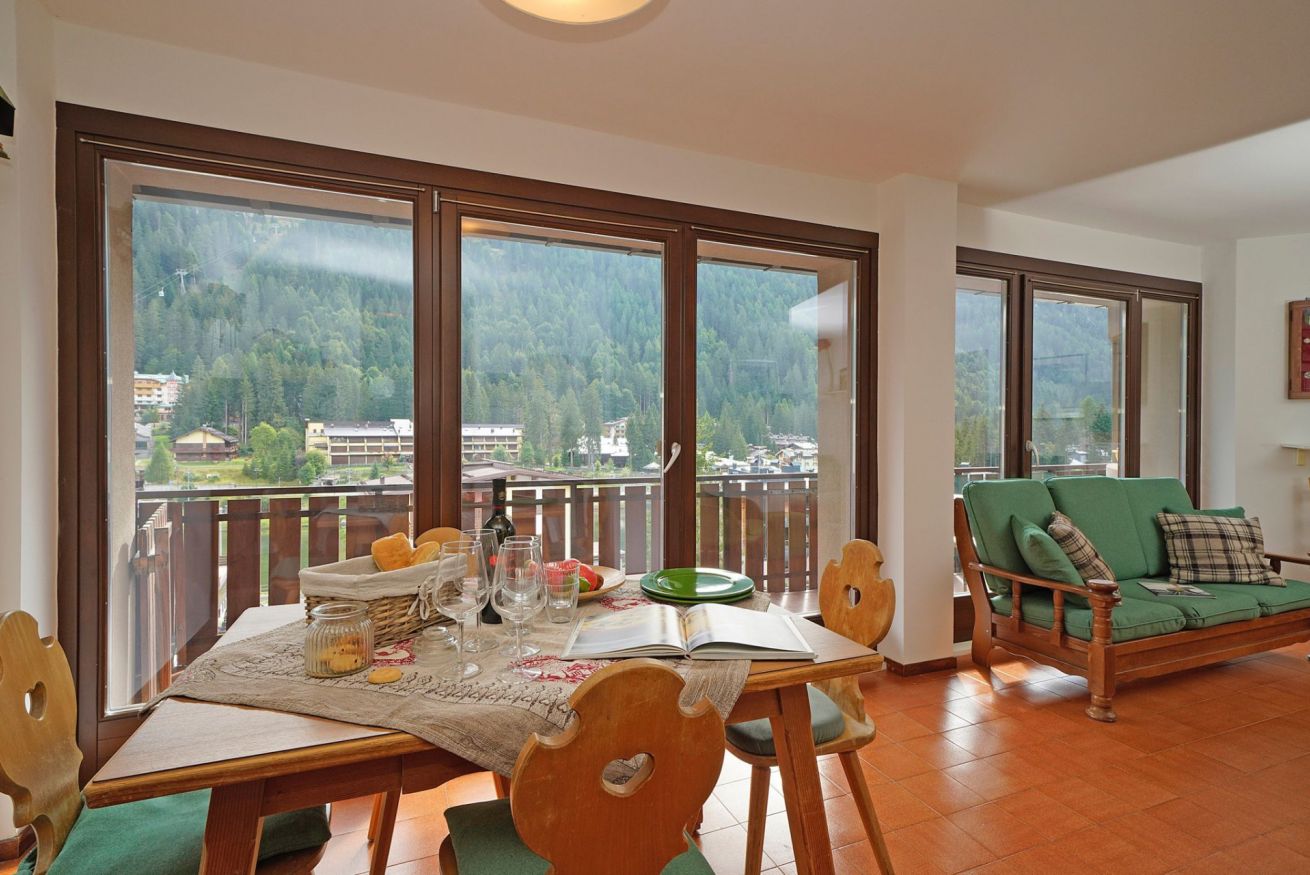 Appartamento luminoso in zona centrale. Posto in un contesto di sole 5 unità abitative, 300 mt da impianti di risalita 5 Laghi, elegante arredato in stile alpino è composto da ingresso soggiorno con zona pranzo e zona relax in fronte al panoramico giardino con affascinante vista, Cucina ben attrezza, 1 bagno con cabina doccia