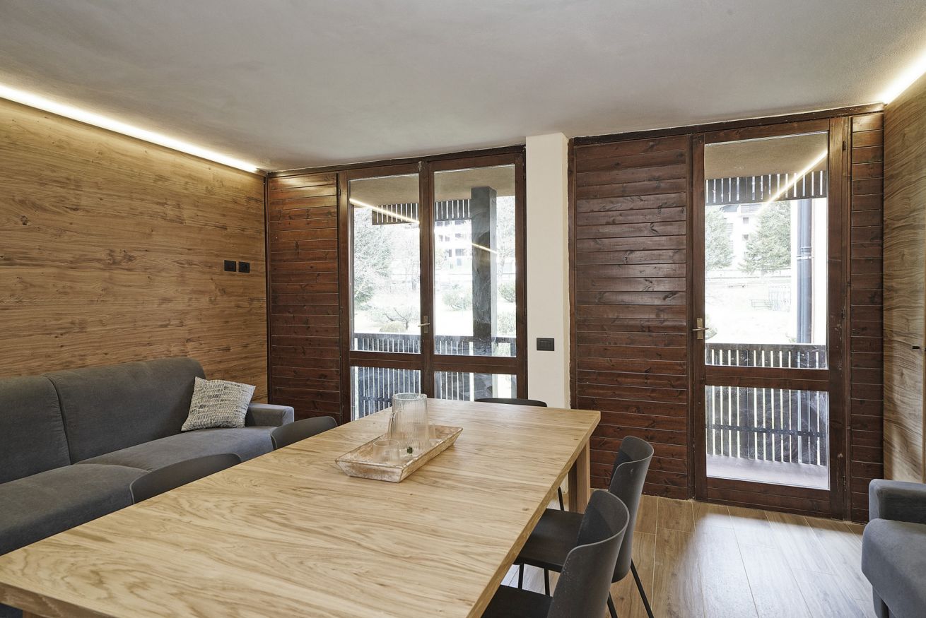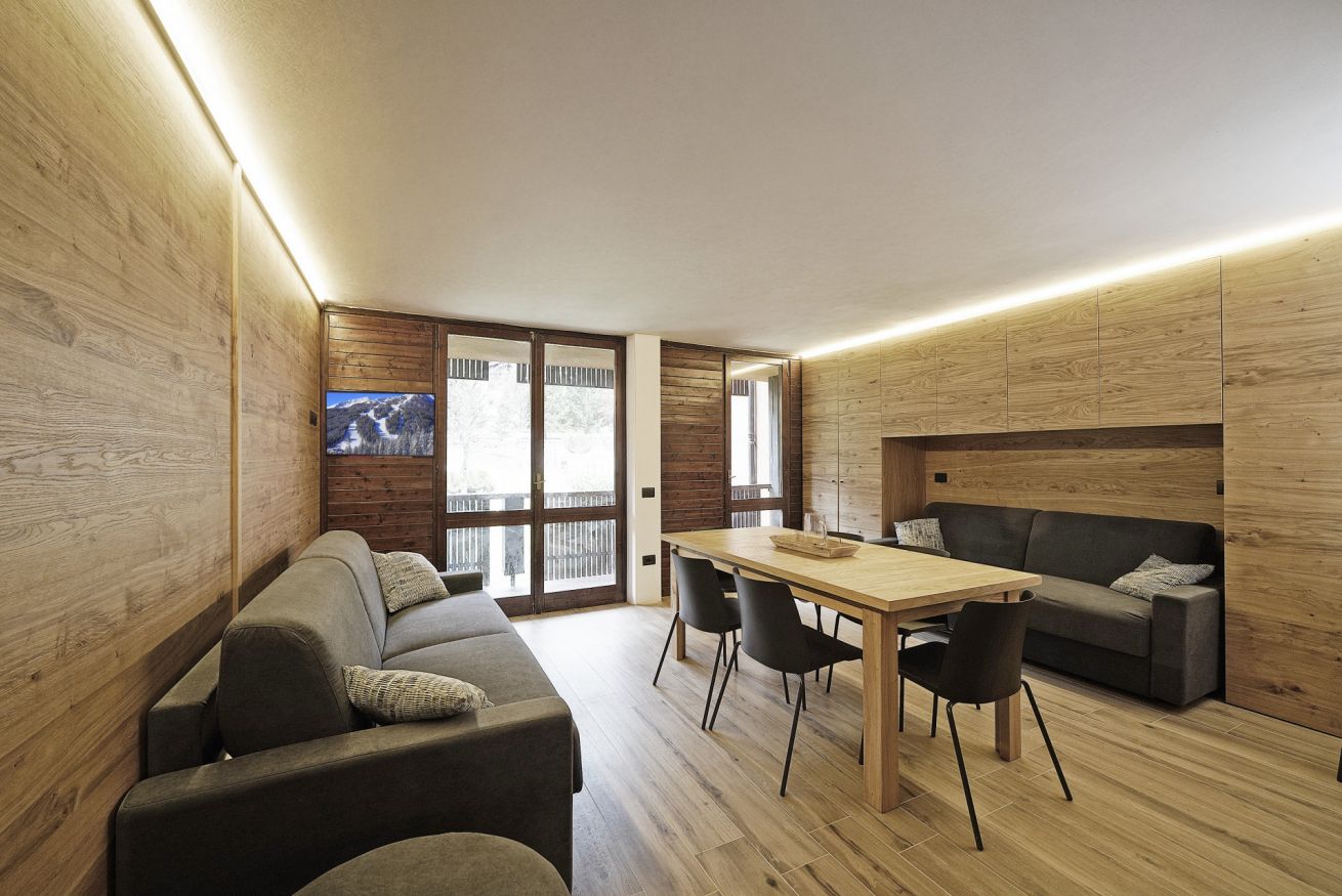 Elegante appartamento in stile alpino moderno a Madonna di Campiglio. Soggiorno luminoso con zona pranzo e 2 divan1, cucina attrezzata, 1 camera matrimoniale e 1 bagno con doccia, 1 divano letto extra large. Balcone ideale per rilassarsi e posto auto incluso. Wi-Fi, TV, riscaldamento, biancheria e asciugamani forniti. Perfetto per una vacanza all’insegna del comfort, a pochi passi dalle piste e dal centro.