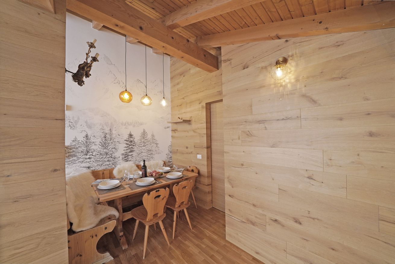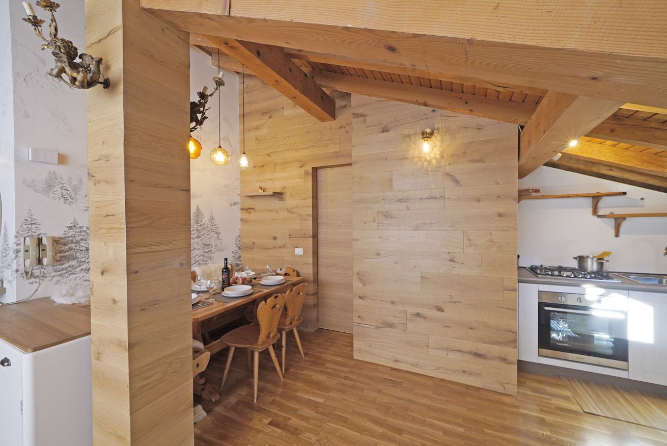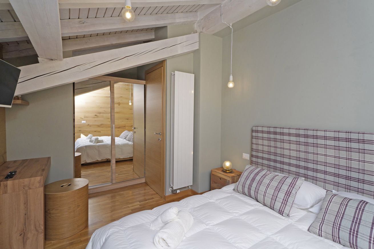 Splendida Mansarda, ristrutturata e arredata nel tipico stile alpino, L’appartamento si trova all’ultimo piano di un condominio è dotato di ascensore, un posto auto nel garage (raggiungibile con l’ascensore) 1 camera da letto matrimoniale, 1 camera con due letti singoli, splendida terrazza panoramica, e un divano letto, un bagno completo di cabina doccia, wi-fi, biancheria da letto e asciugamani compresi nel prezzo.