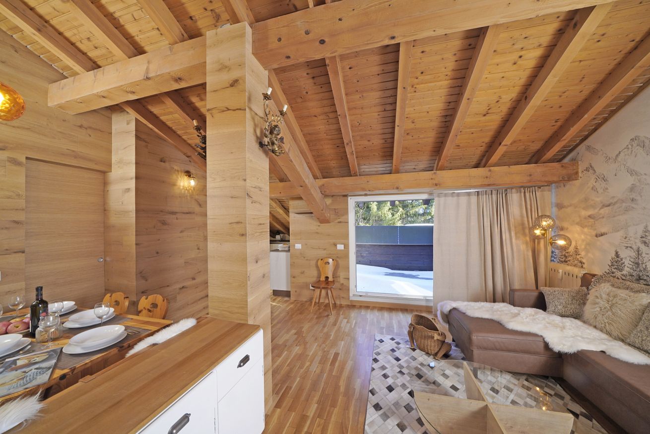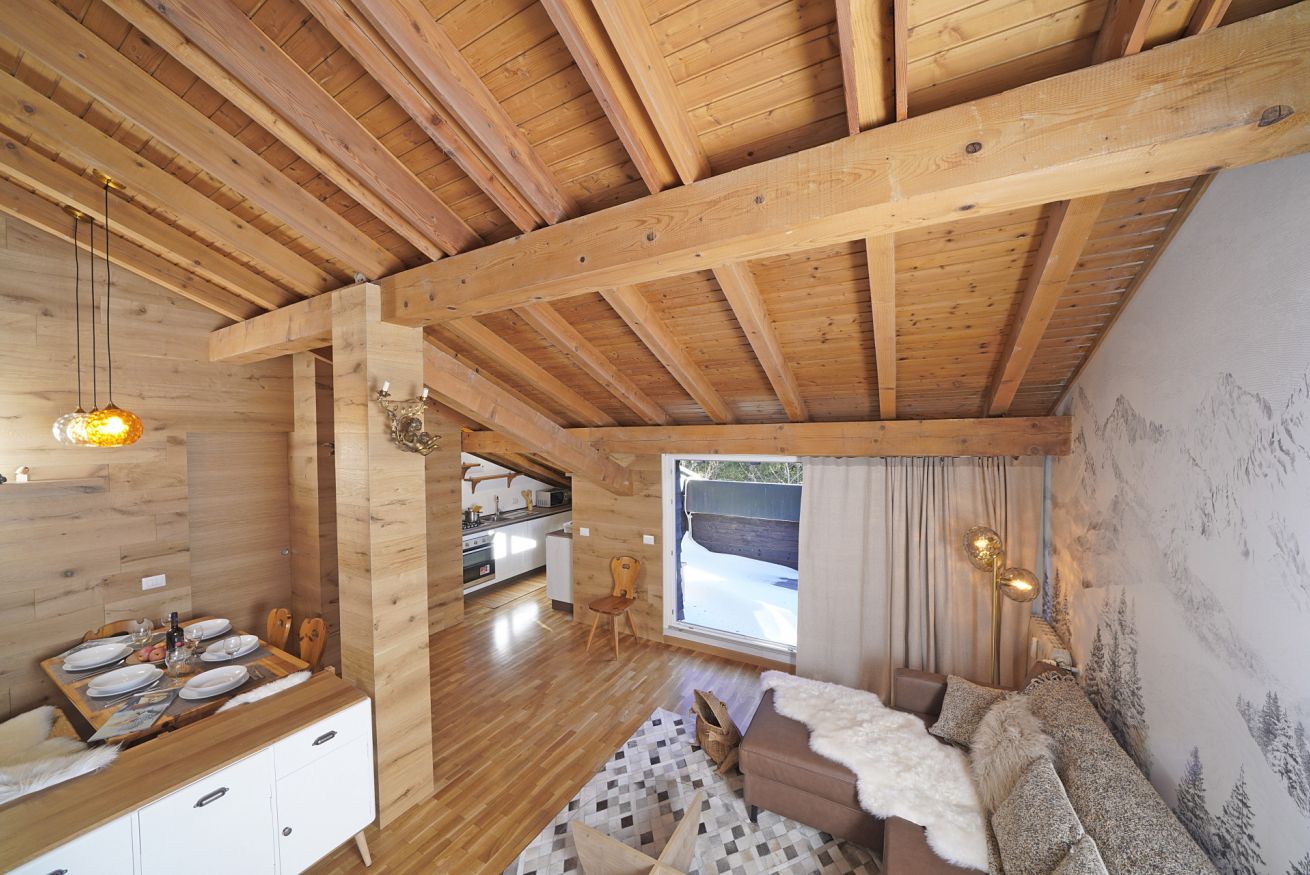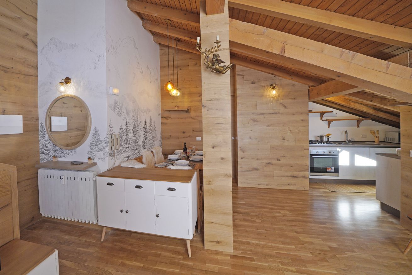 Splendida Mansarda, ristrutturata e arredata nel tipico stile alpino, L’appartamento si trova all’ultimo piano di un condominio è dotato di ascensore, un posto auto nel garage (raggiungibile con l’ascensore) 1 camera da letto matrimoniale, 1 camera con due letti singoli, splendida terrazza panoramica, e un divano letto, un bagno completo di cabina doccia, wi-fi, biancheria da letto e asciugamani compresi nel prezzo.