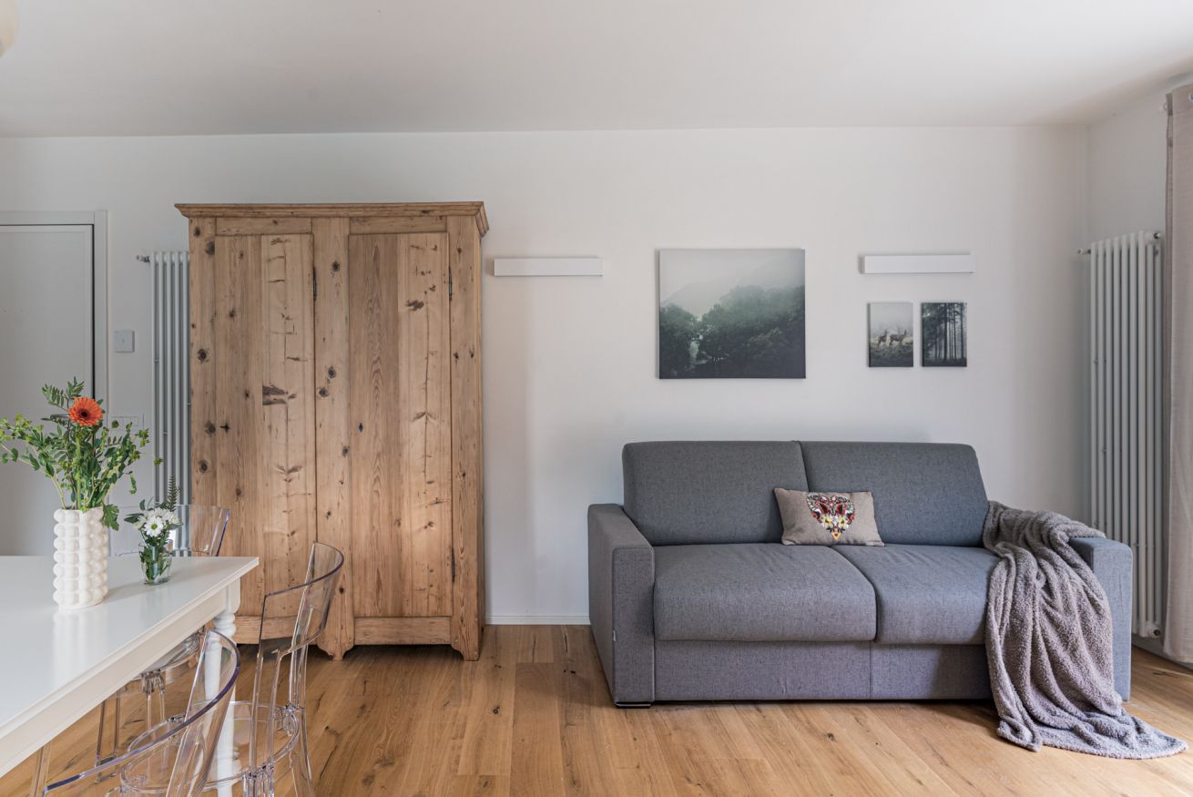 Appartamento ristrutturato in tipico stile alpino, situato a Pinzolo a pochi passi dagli impianti di risalita, collegati con Madonna di Campiglio, Folgarida e Marilleva. Dispone di Wi-Fi in tutta la casa, due camere da letto (una matrimoniale e una con due letti singoli), un bagno moderno e ambienti curati con ogni comfort. Parcheggio gratuito e deposito sci inclusi. Ideale per una vacanza sulla neve o in montagna.